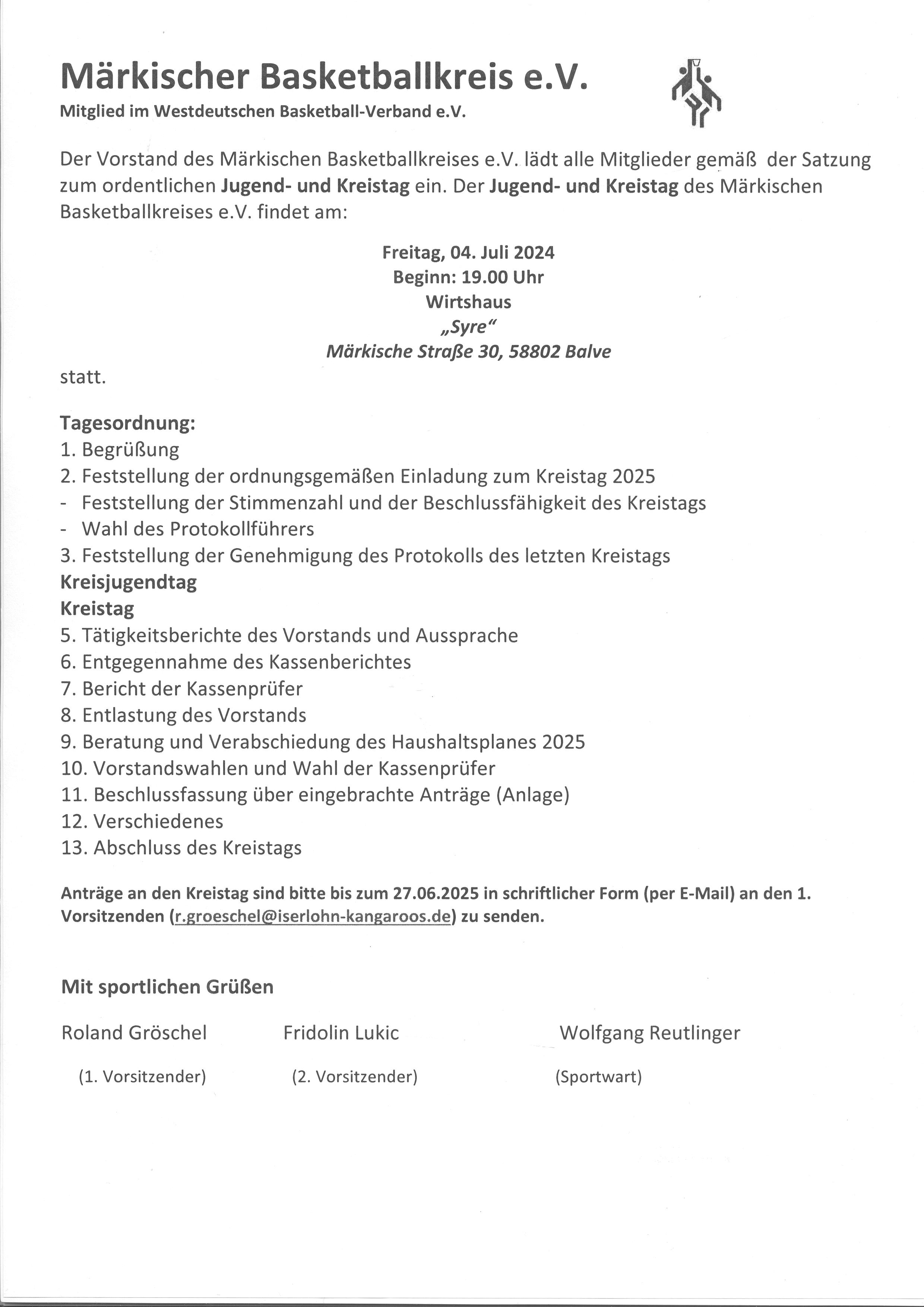 Der Vorstand lädt zu beiden Veranstaltungen des Märkischen Basketball-Kreis ein.